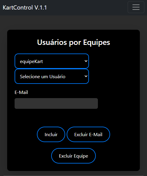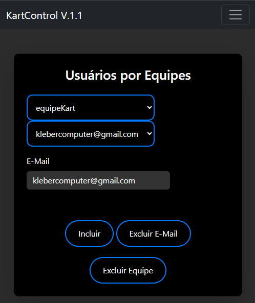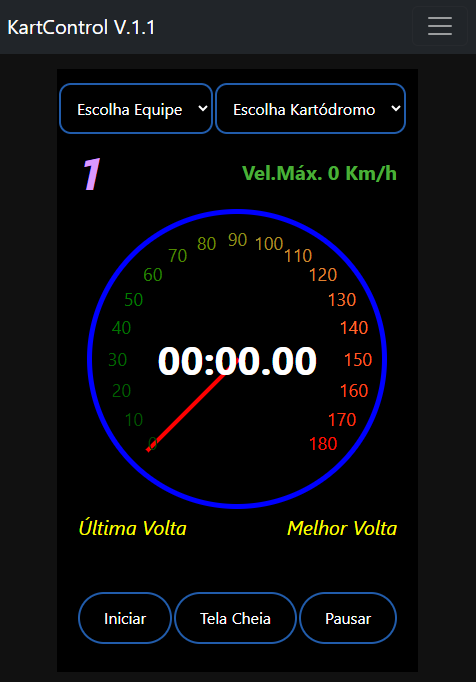 10. Por fim, vá para a tela Cronômetro, escolha a Equipe (se você for administrador ou convidado) e o Kartódromo. Após, clique no botão Iniciar e comece a corrida.