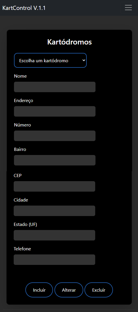 1. Na tela de Kartódromos, preencha os campos e clique em Incluir.
